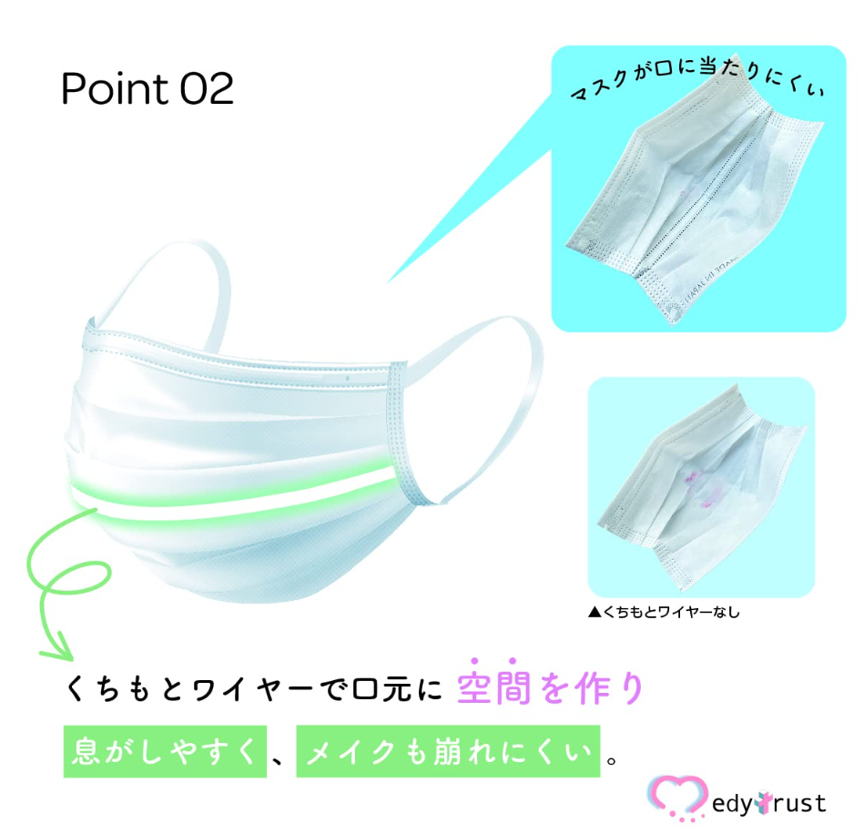 ※立体オメガプリーツ形状で口元に空間ができて息苦しくなりにくいです。