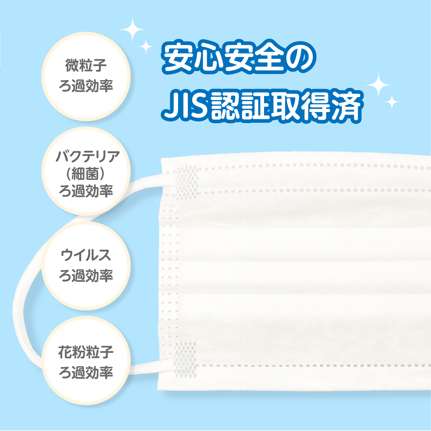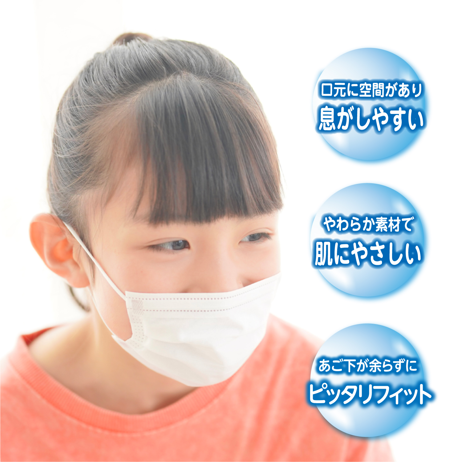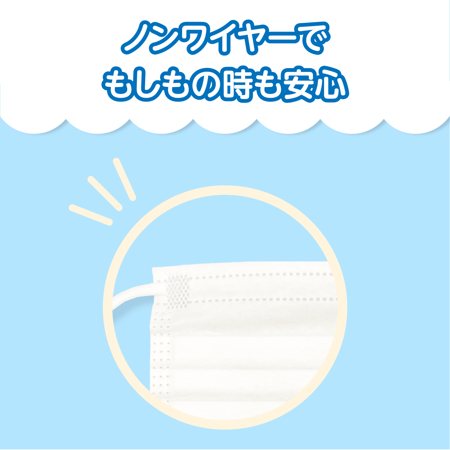 ※やわらか素材で肌にやさしい、2歳頃~6歳頃のお子様にぴったりの不織布マスク